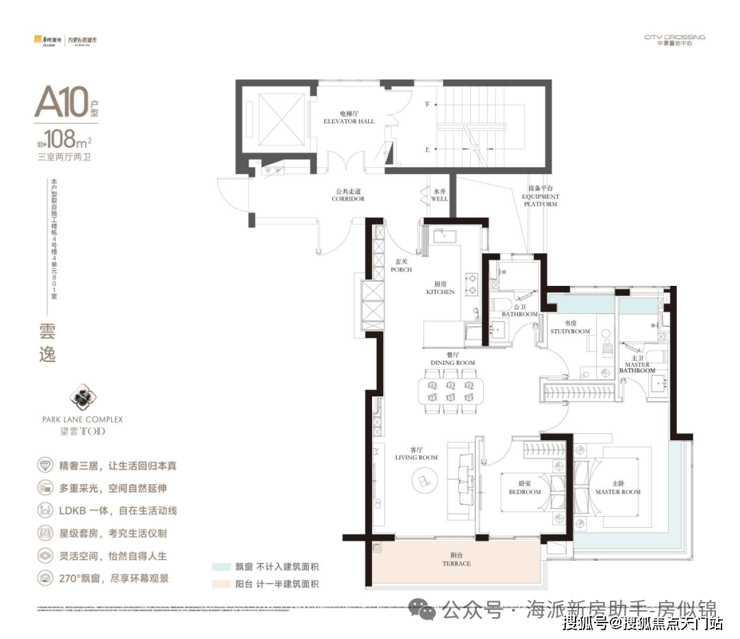 该户型经过计算,附赠空间面积达到约26㎡,加上电梯厅和附赠飘窗空间后,该户型实得率可以突破90%!丝毫不逊色于今天的多阳台产品,方正通透360无死角的没缺点。