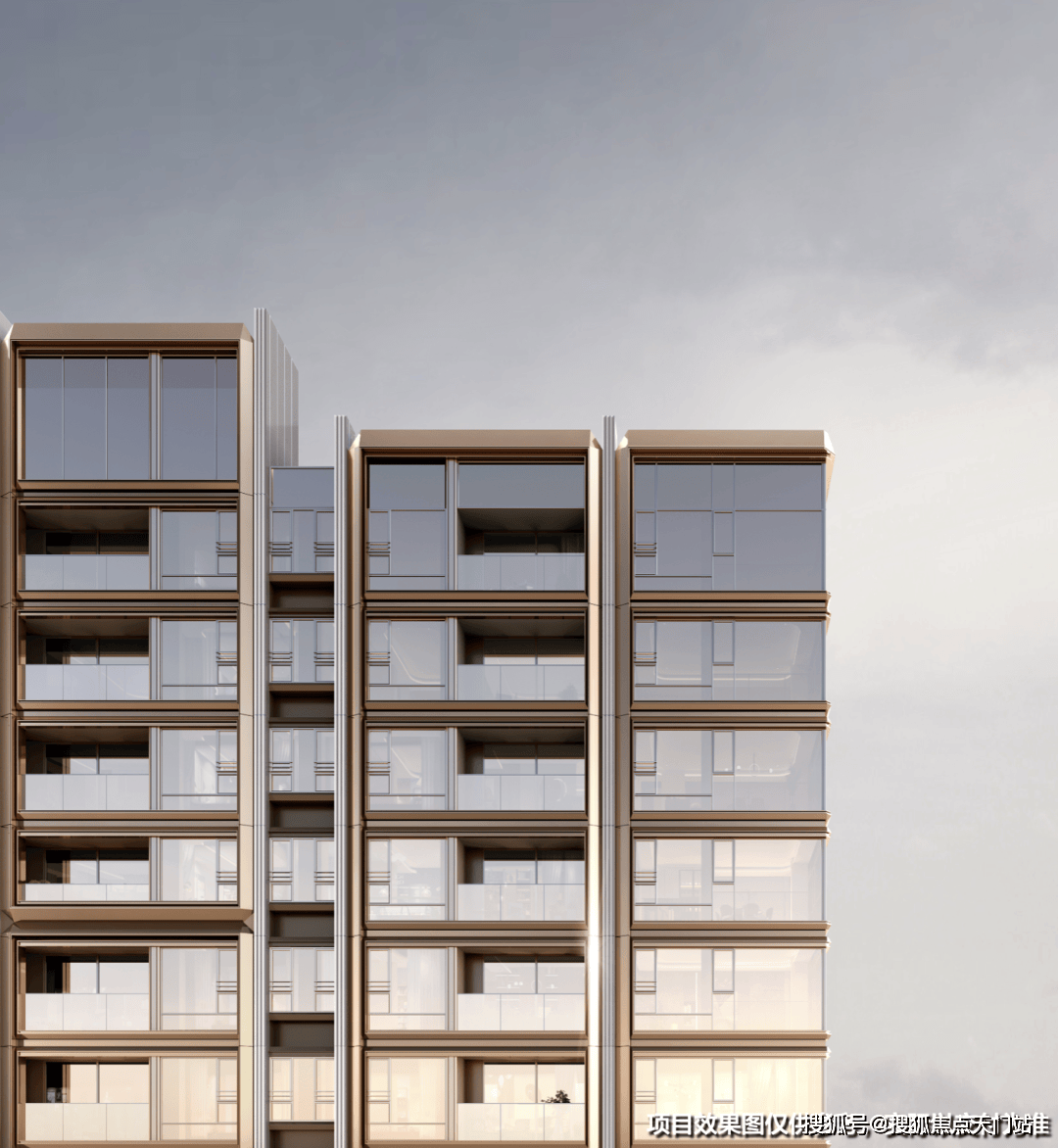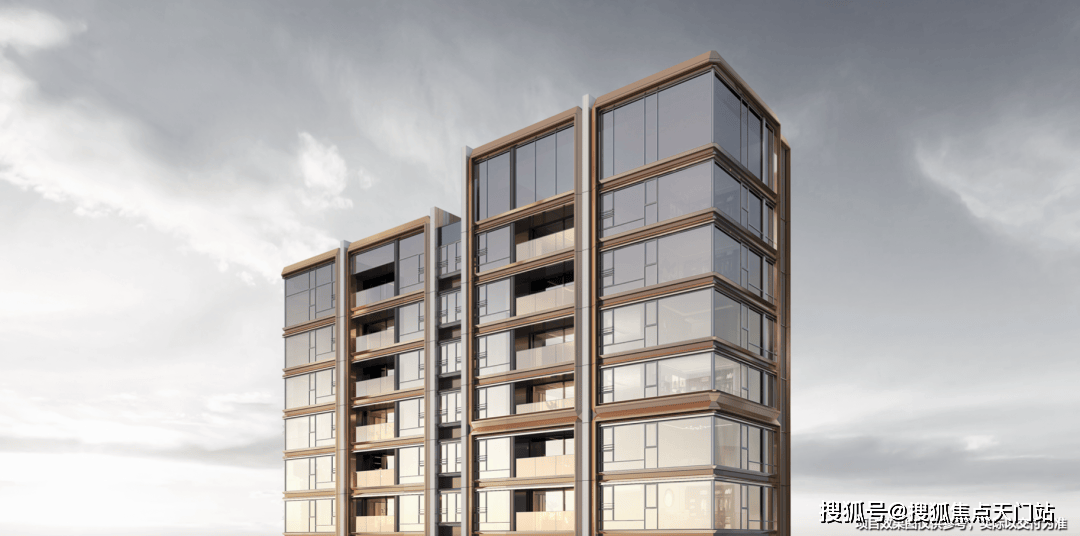 同时,南侧还运用了铜色的铝板和浅白色陶瓷板,这样立面风格,再搭配上塔冠的造型,实在太抓眼球了。