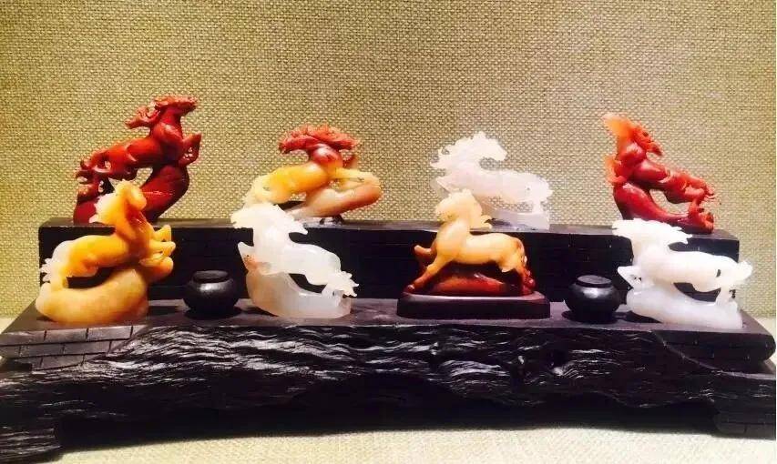 “八骏奔腾” 承载着事业腾达、朝气蓬勃的吉祥寓意,既是寿山品种石材质多样性的集中展示,也是传统雕刻技艺与吉祥文化的融合之作,兼具观赏价值与收藏意义,是案头陈设与文化收藏的佳品。