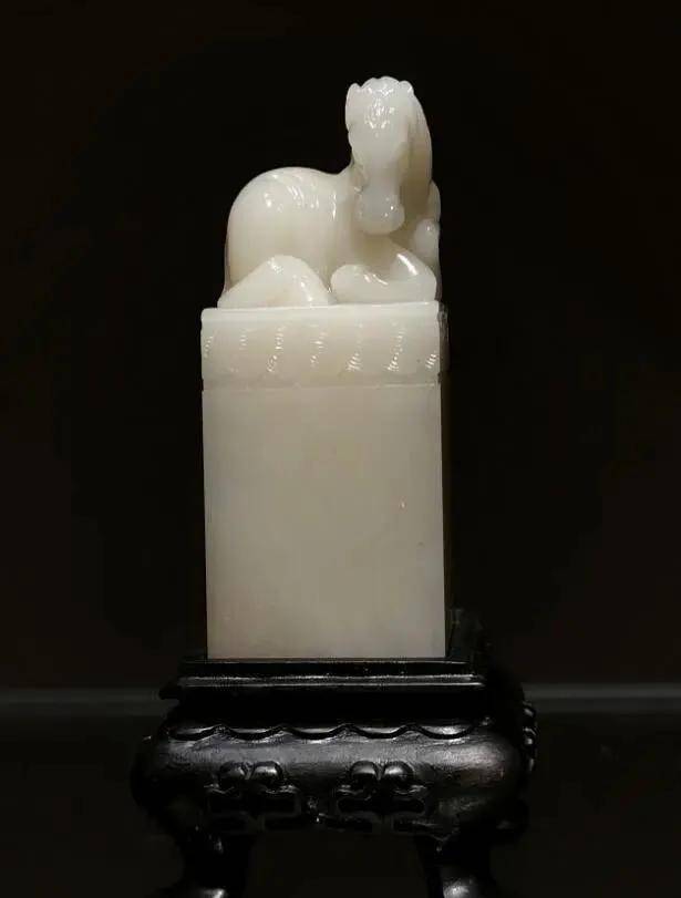 这件《白马王子》印章,取材寿山芙蓉石中的顶级品类——,石质温润凝腻、白如凝脂,隐现细微天然纹理,尽显“石中君子”的雅致质感,是寿山石材中的珍品。
